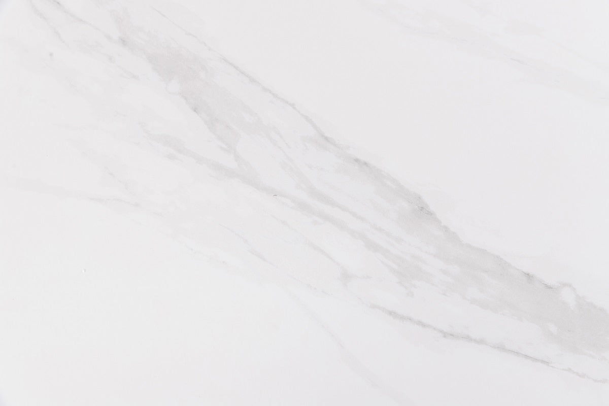 - Matt white marble-look finish