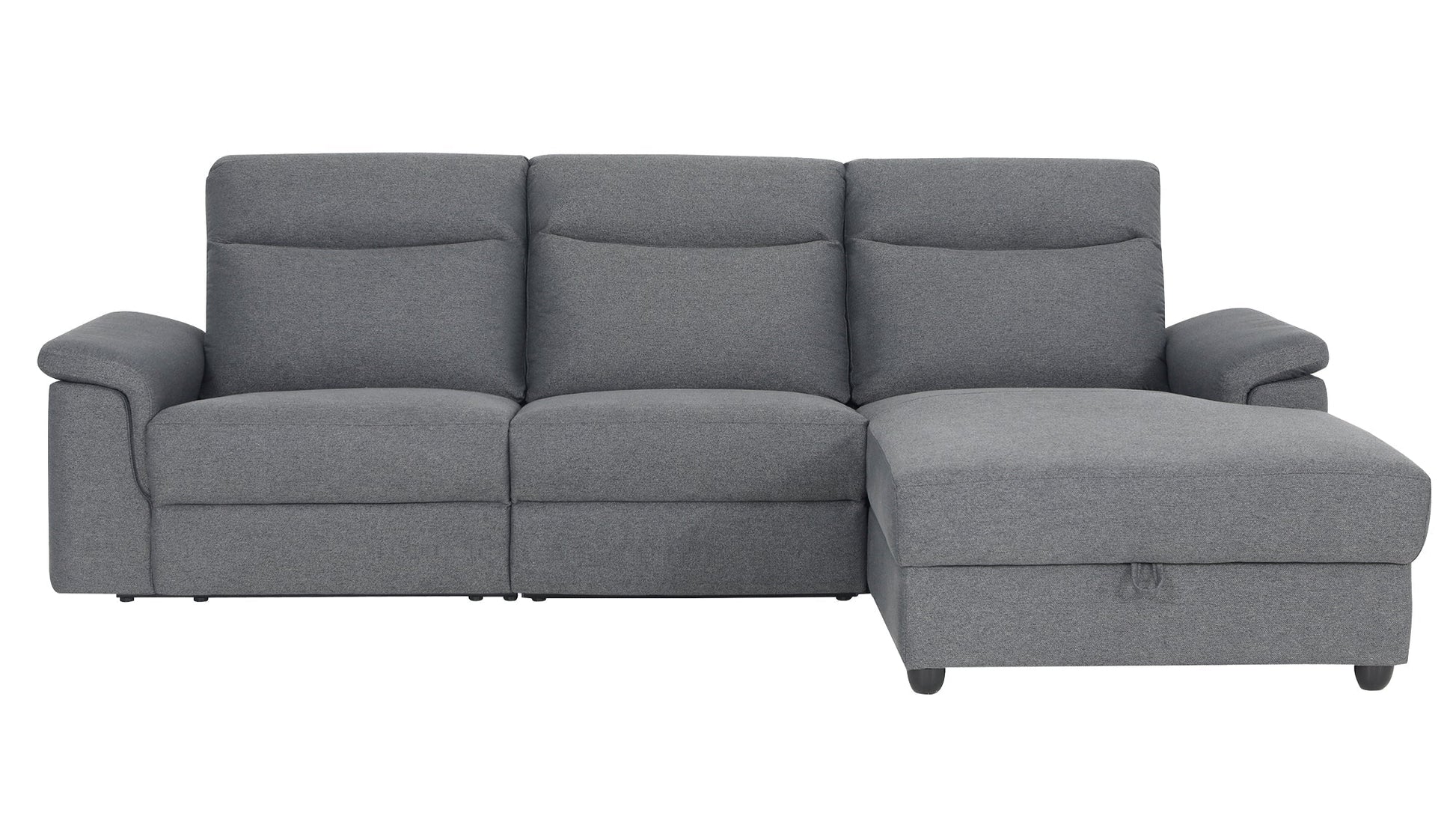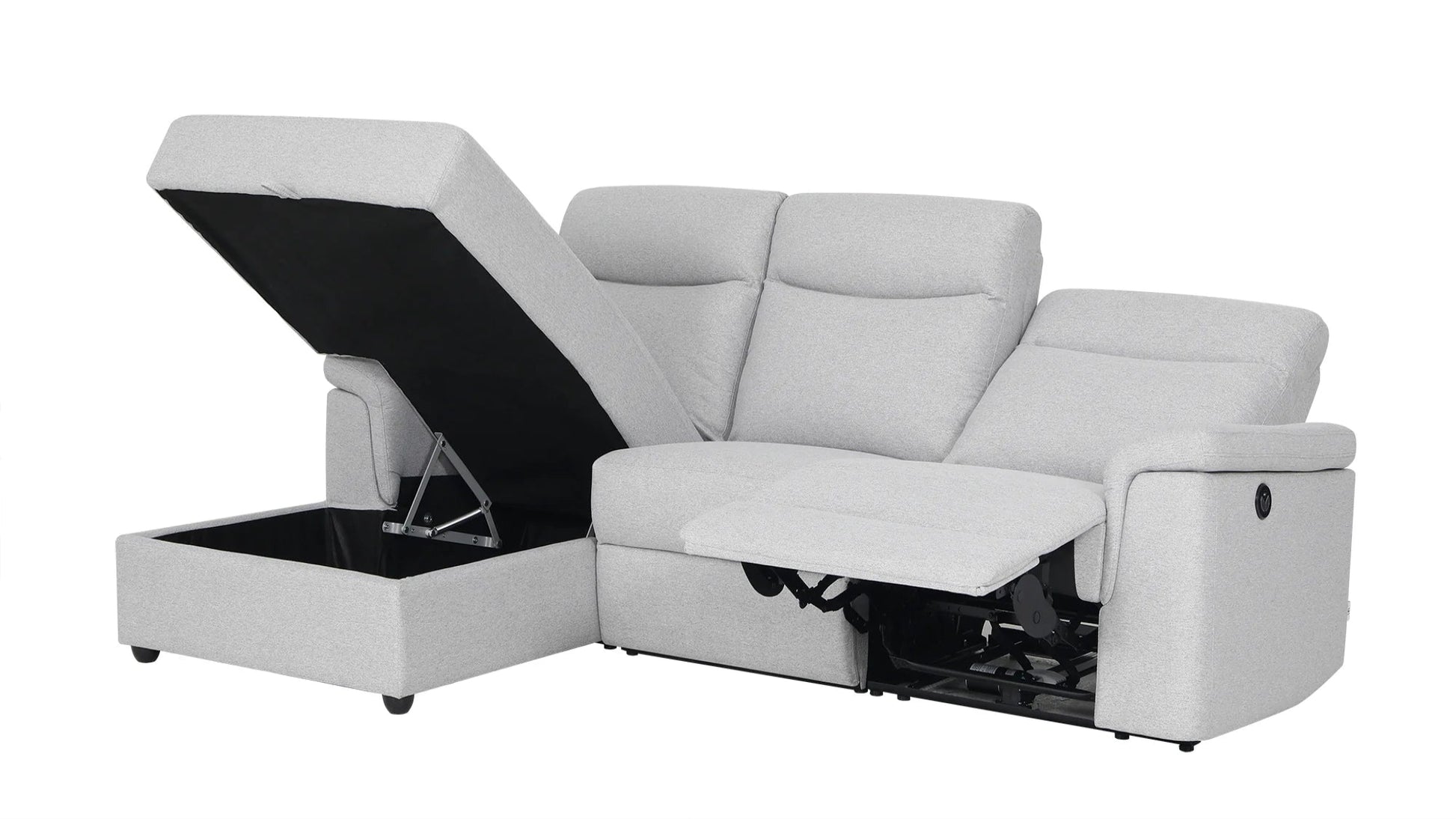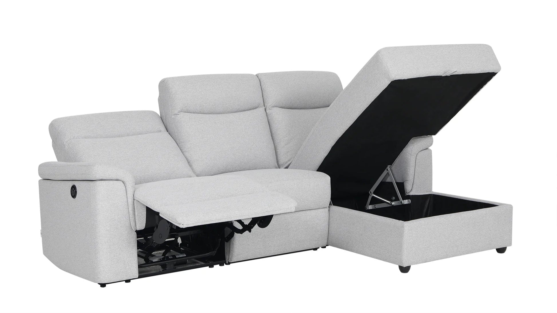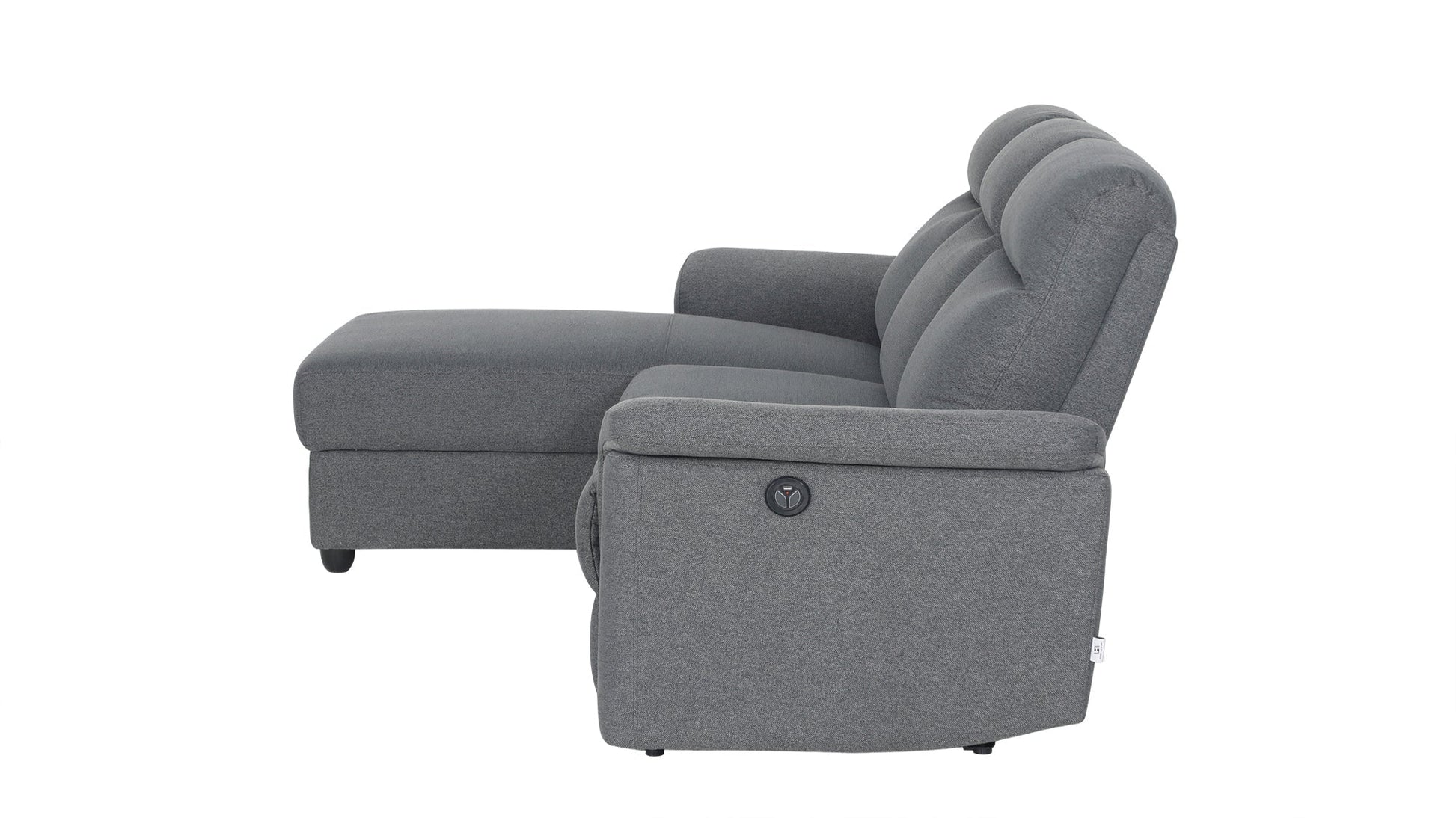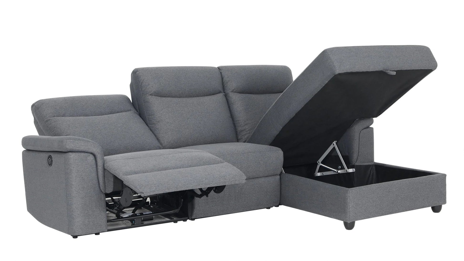 Dawson Fabric Electrical Recliner 2 Seater with Storage Chaise Dark Grey/Silver