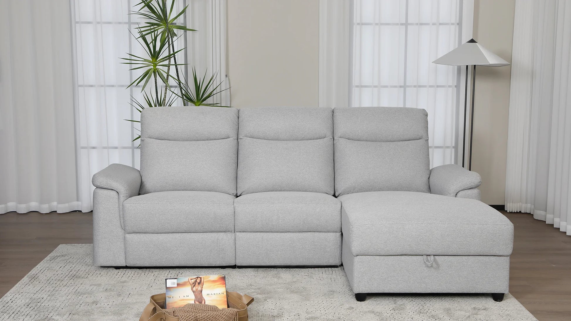 The Dawson Fabric Electrical Recliner 2 Seater with Storage Chaise is your all-in-one lounge solution for comfort, convenience, and modern living. With the push of a button, you can recline into relaxation while the built-in chaise opens up to reveal generous hidden storage. Upholstered in soft, durable fabric in your choice of Dark Grey or Silver, this piece blends functionality with sleek sophistication — perfect for everyday lounging or hosting in style.