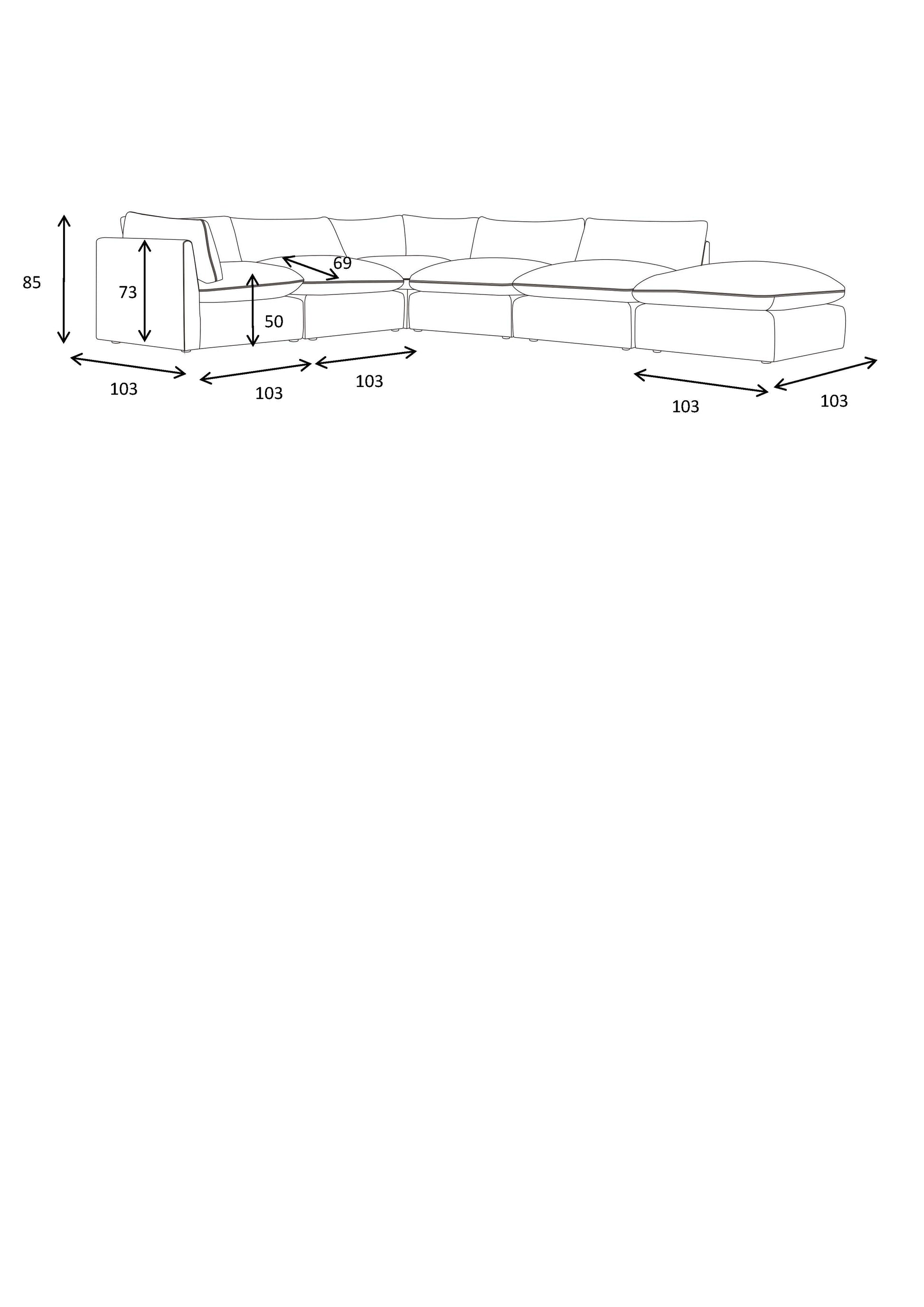 - Corner Piece: Width 1030mm x Depth 1030mm x Height 730/850mm