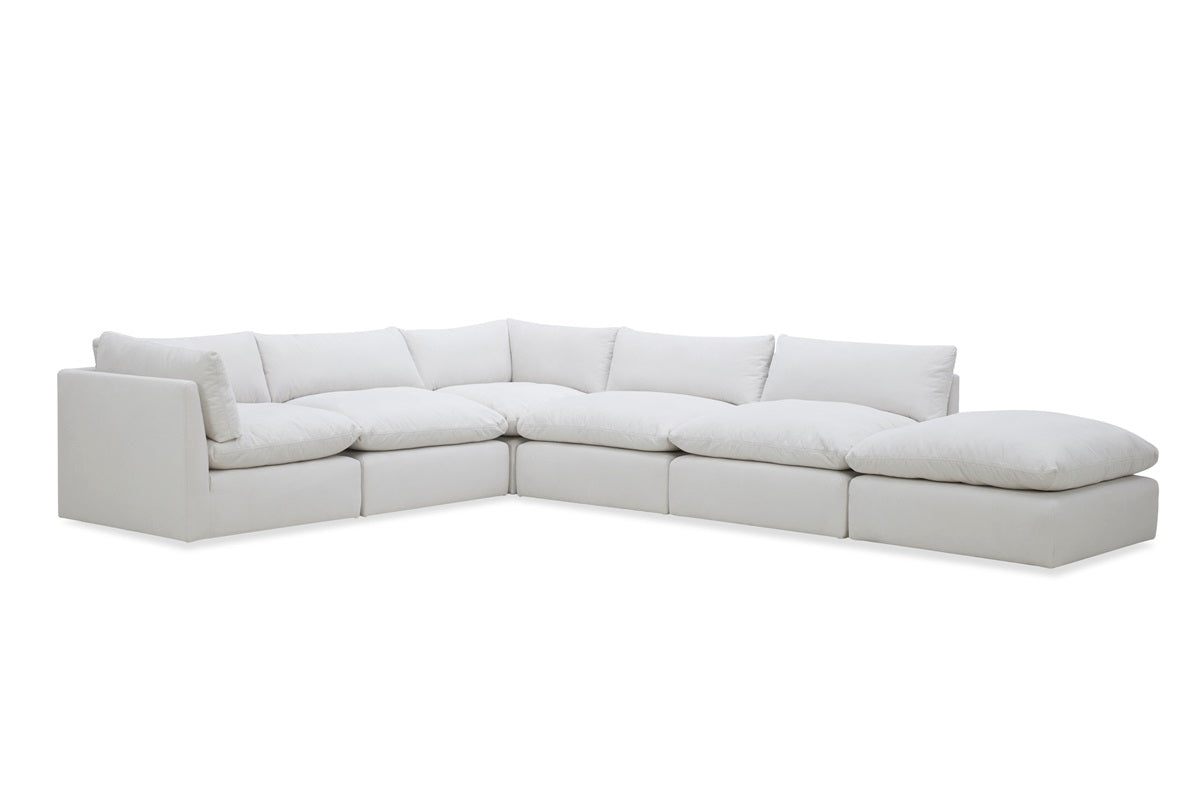 Generous in size and timeless in style, the Leicester Corner Lounge offers plush comfort with deep seating, soft fabric upholstery, and modular flexibility to create a living space that feels both relaxed and refined.