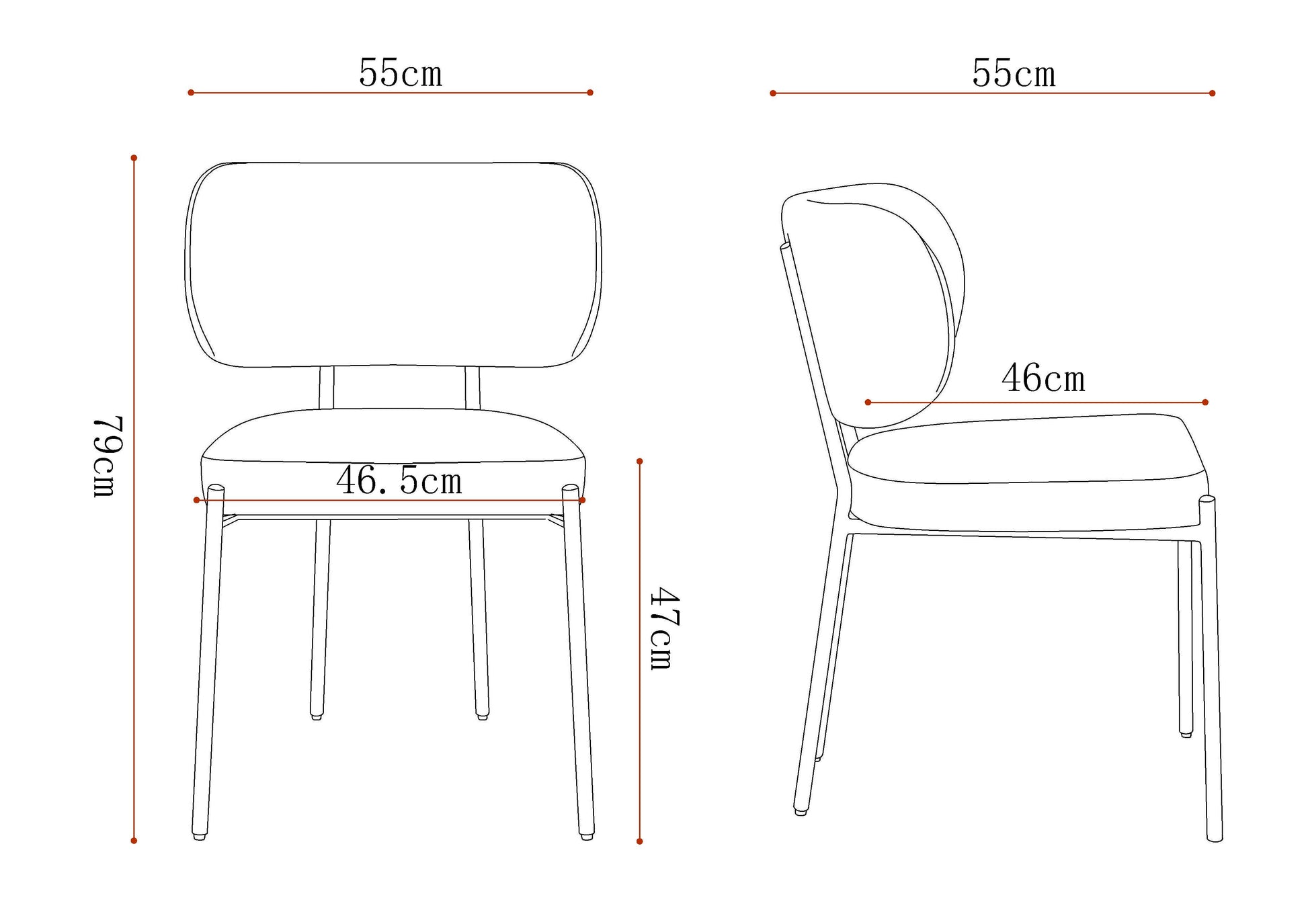 The upholstered seat offers comfortable support for everyday use, while the black metal legs provide a stable base and a clear visual contrast against the white fabric. With its balanced proportions and straightforward design, the Lennon Dining Chair suits both casual meals and longer sittings.
