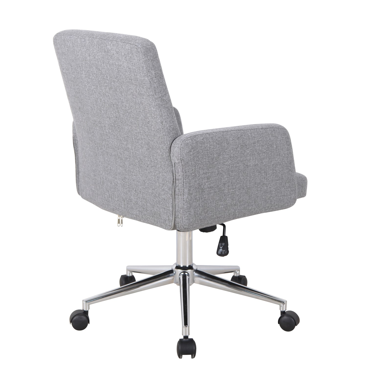 The Megan Office Chair blends contemporary style with functional comfort, featuring plush fabric upholstery, supportive armrests, and a chrome swivel base. Ideal for both home and office, it provides modern elegance with everyday practicality.
