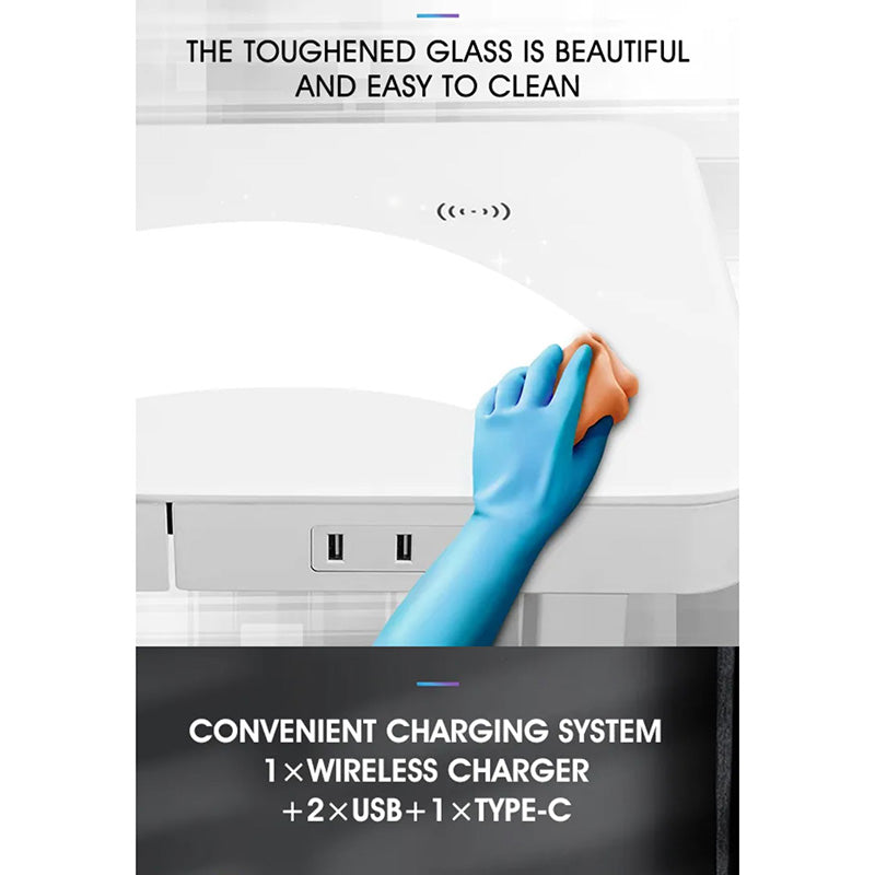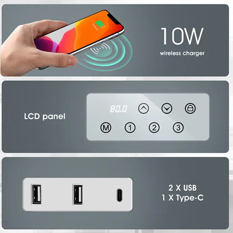 Beyond height adjustment, SIRI integrates practical features for everyday use. The desk includes an LCD control panel with 3 memory presets, step-less adjustment, and a child safety lock for added peace of mind. Built with a heavy-duty SPCC steel frame, it supports up to 120 kg and offers excellent stability. Added conveniences such as built-in storage drawers and a 10W wireless charging pad with USB & Type-C ports help keep your workspace organised and efficient.