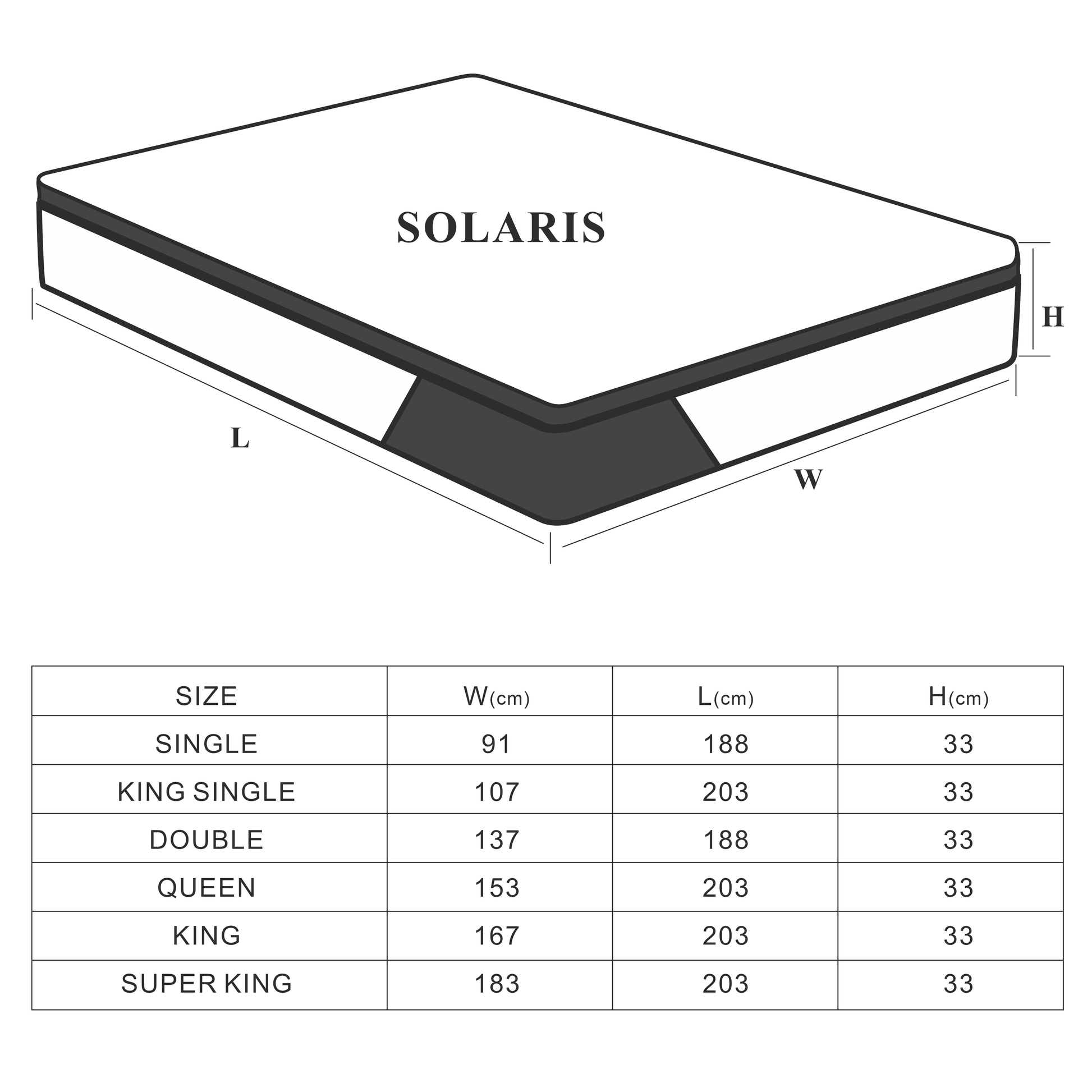 The Solaris Mattress is built for those who value both style and deep restorative sleep. Its premium quilting and plush Euro-top design provide a luxurious surface, while the advanced support system ensures long-lasting comfort and durability. Perfect for master bedrooms, this mattress combines elegance with ergonomic support for a restful night’s sleep.