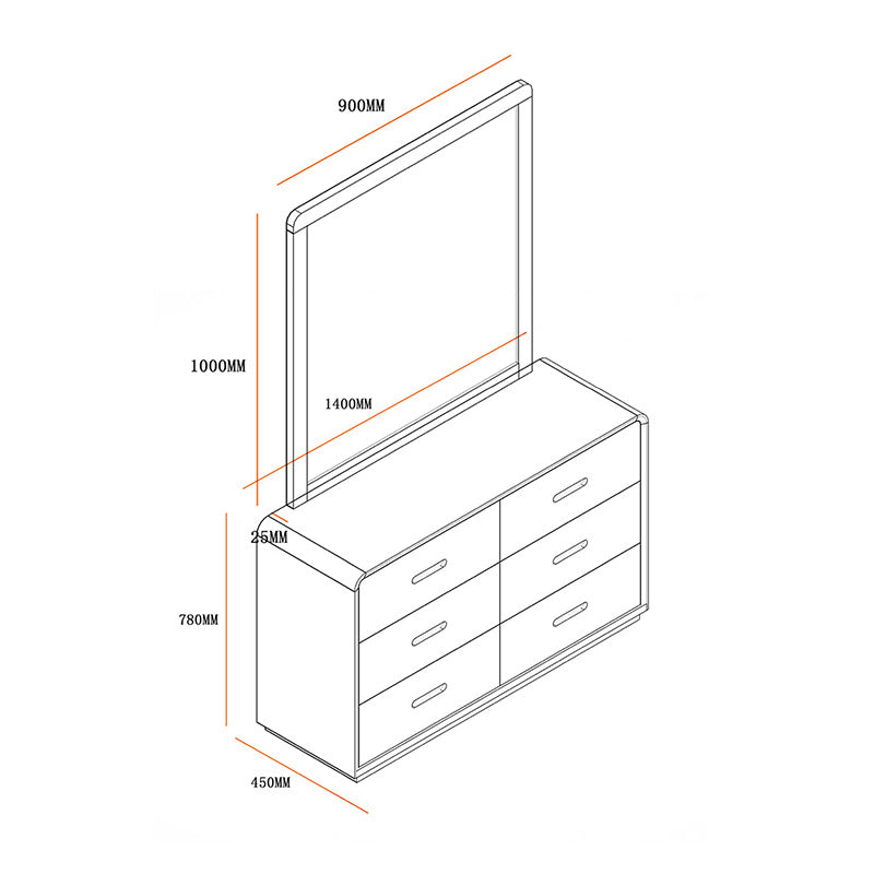 Mirror (Optional): W 900 × D 25 × H 1000 mm