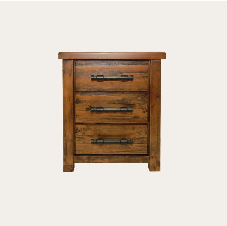 The Woodgate 3-Drawer Bedside Table combines rustic timber character with practical storage for everyday bedroom use. Its straightforward form and natural finish make it a versatile piece that pairs well with a range of interiors, from classic to relaxed modern.